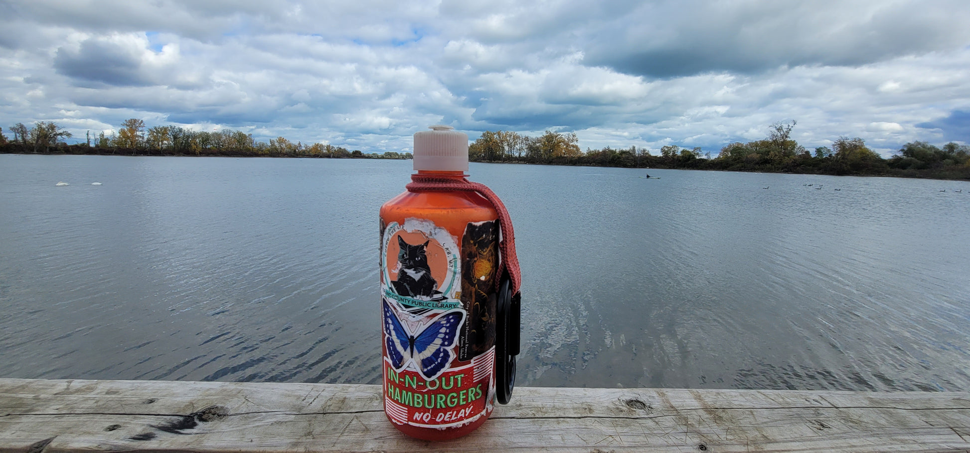 Hand Made, Durable, Recycled Climbing Rope Dual Purpose Handle and Clip with Black Diamond Oval Carabiner. Made For Narrow Mouth Nalgene Bottle.